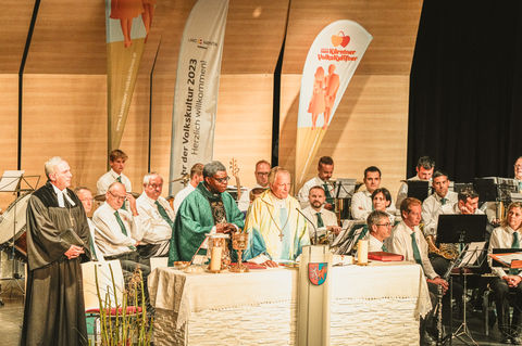 Ökumenischer Gottesdienst mit Bischofsvikar Dr. Engelbert Guggenberger, Pfarrer Dr. Sergius Duru und Superintendent Mag. Manfred Sauer, umrahmt vom Kirchenchor Kötschach und dem KELAG Blasorchester Kärnten